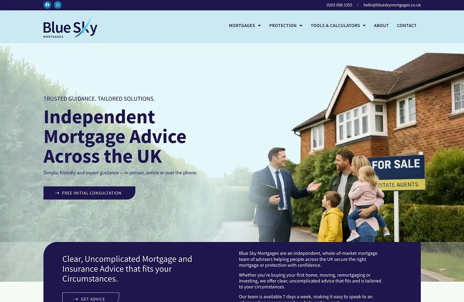 Blue Sky Mortgages approached us to design and build a new website that would clearly communicate their professionalism, independence, and the breadth of services offered by the Blue Sky Financial Group. The aim was to create a modern, approachable platform that builds trust while remaining clear, compliant, and easy to navigate for users across the UK.