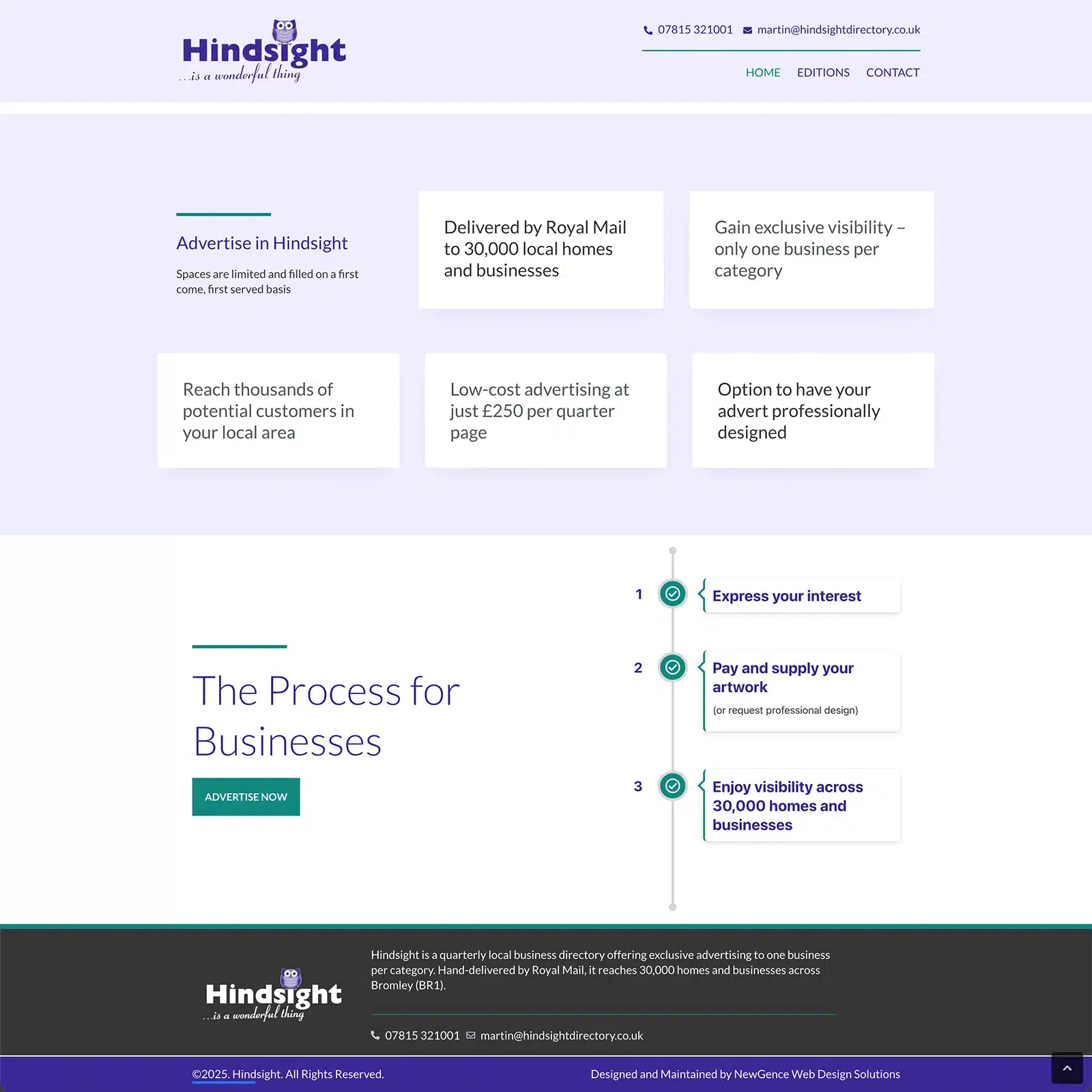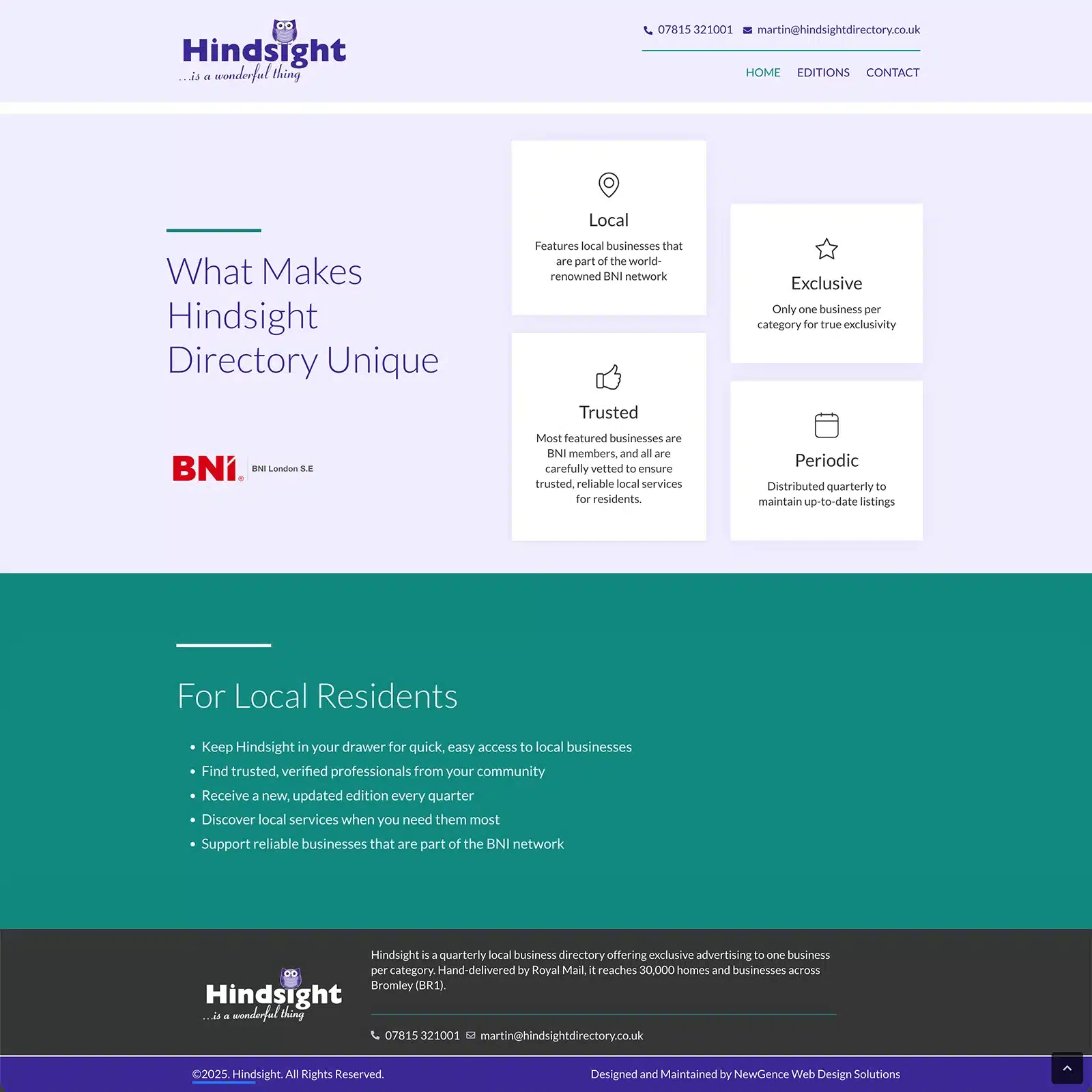 The new website presents Hindsight as a forward-thinking local directory, combining traditional print with a growing digital presence. With clear messaging, improved usability and a modern design, the platform effectively highlights the benefits for advertisers while making it easy for users to explore and engage with each edition.