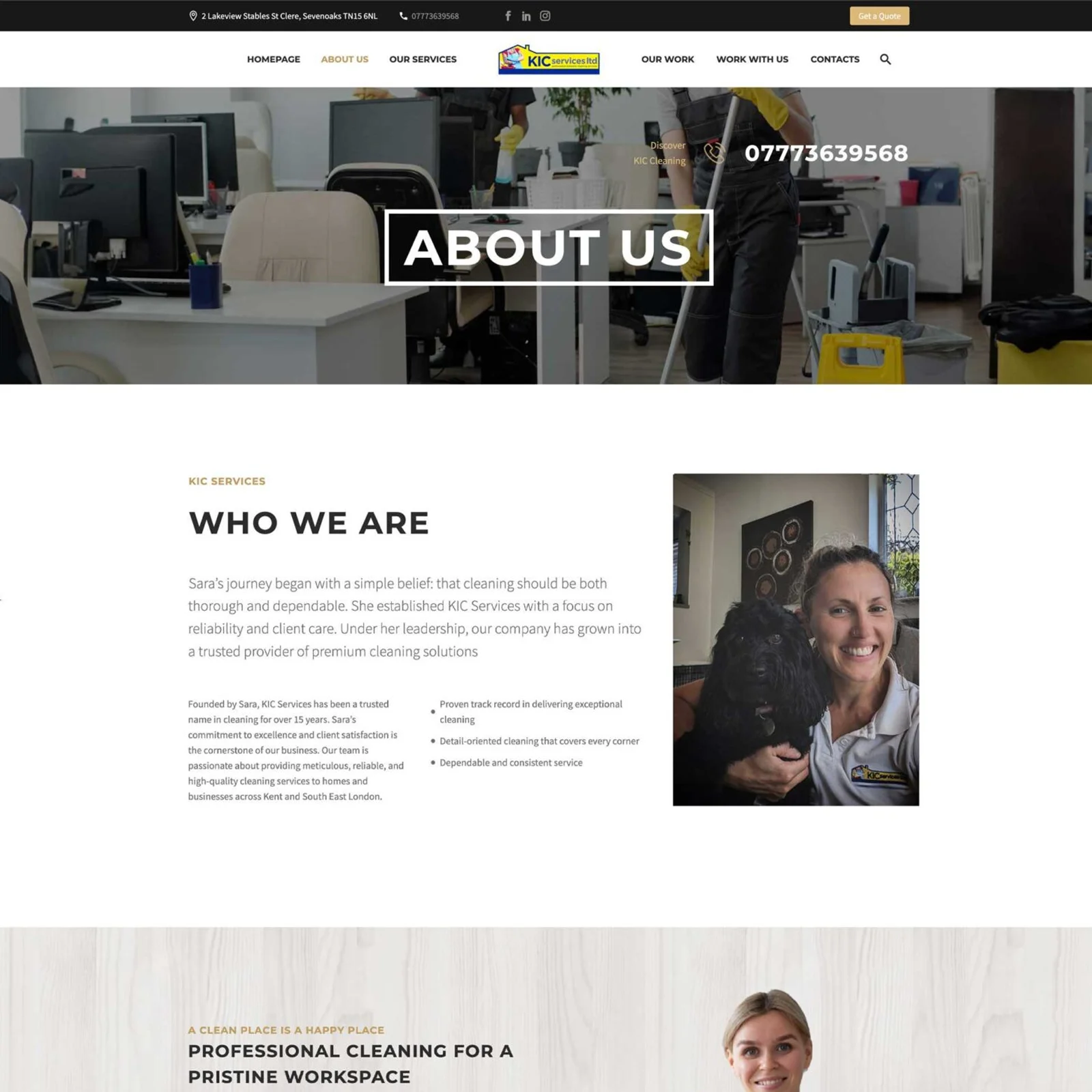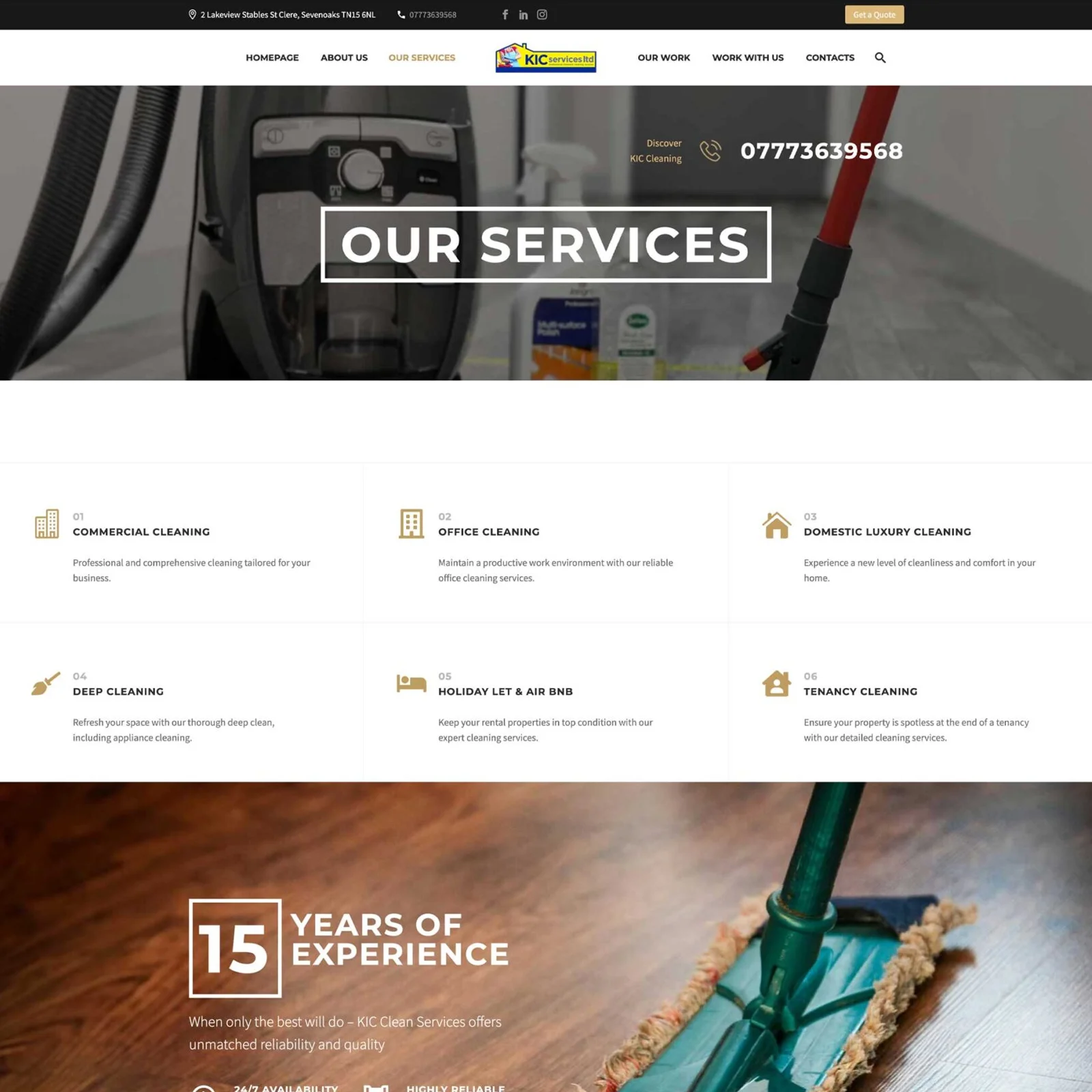 KIC Services has successfully transitioned to a new website, replacing their old DIY site built on the Wix platform. The new site exudes a premier, luxury feel that reflects the high-quality services they offer, including commercial, office, and domestic cleaning solutions. Each element is thoughtfully designed to enhance user experience, making it easy for clients to navigate and access essential information.