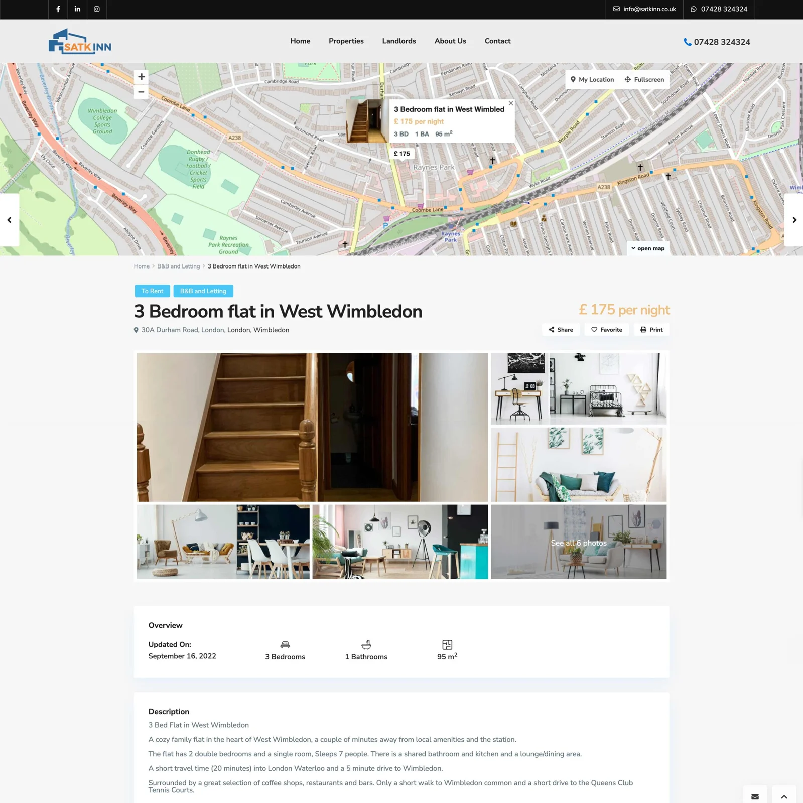 Branding and website designed for SATKINN offering Holiday lets and lettings in west london with features to display properties details.